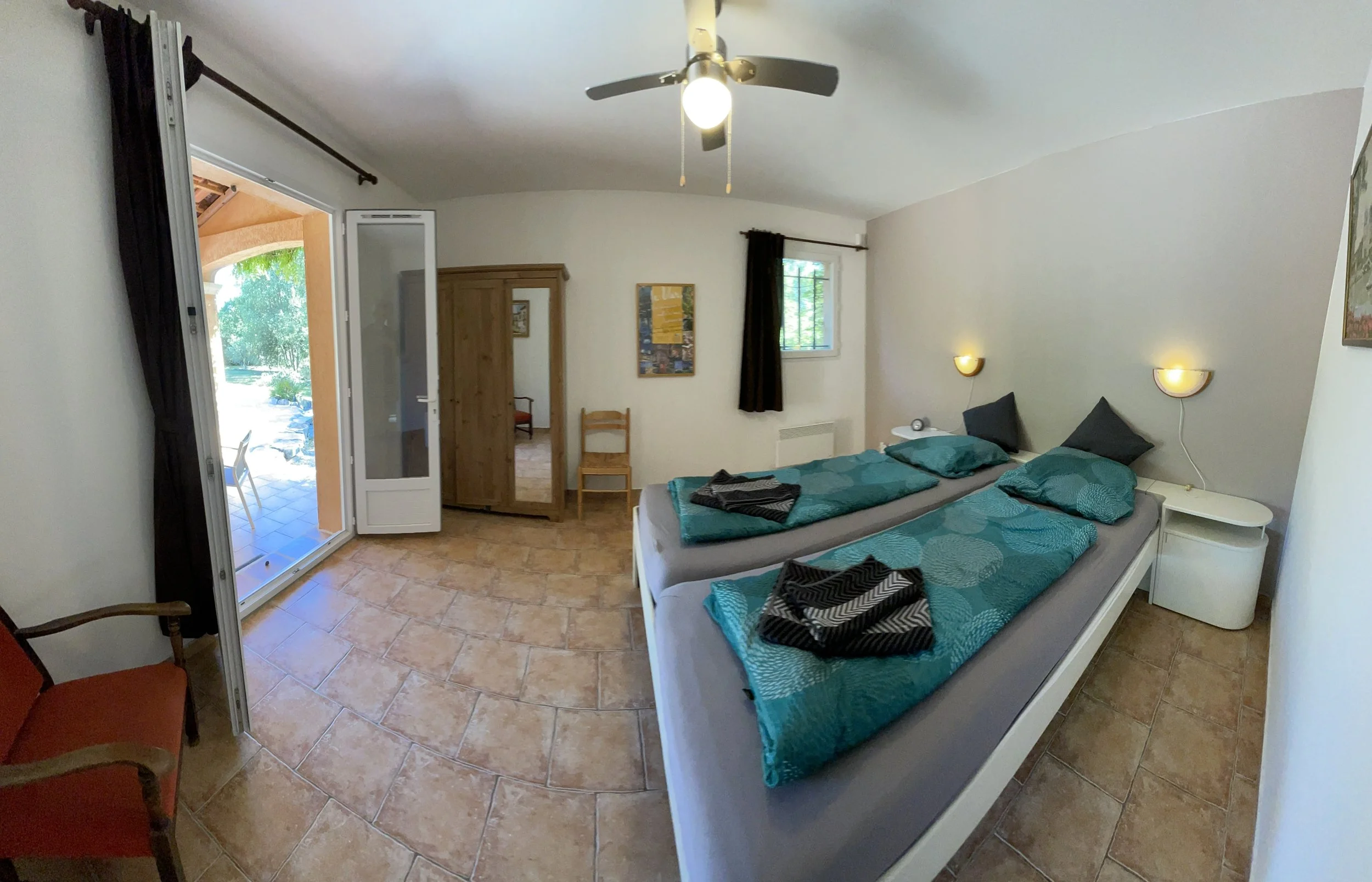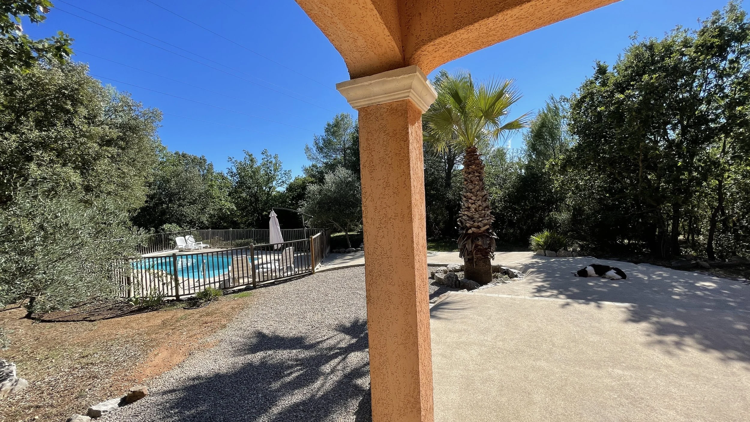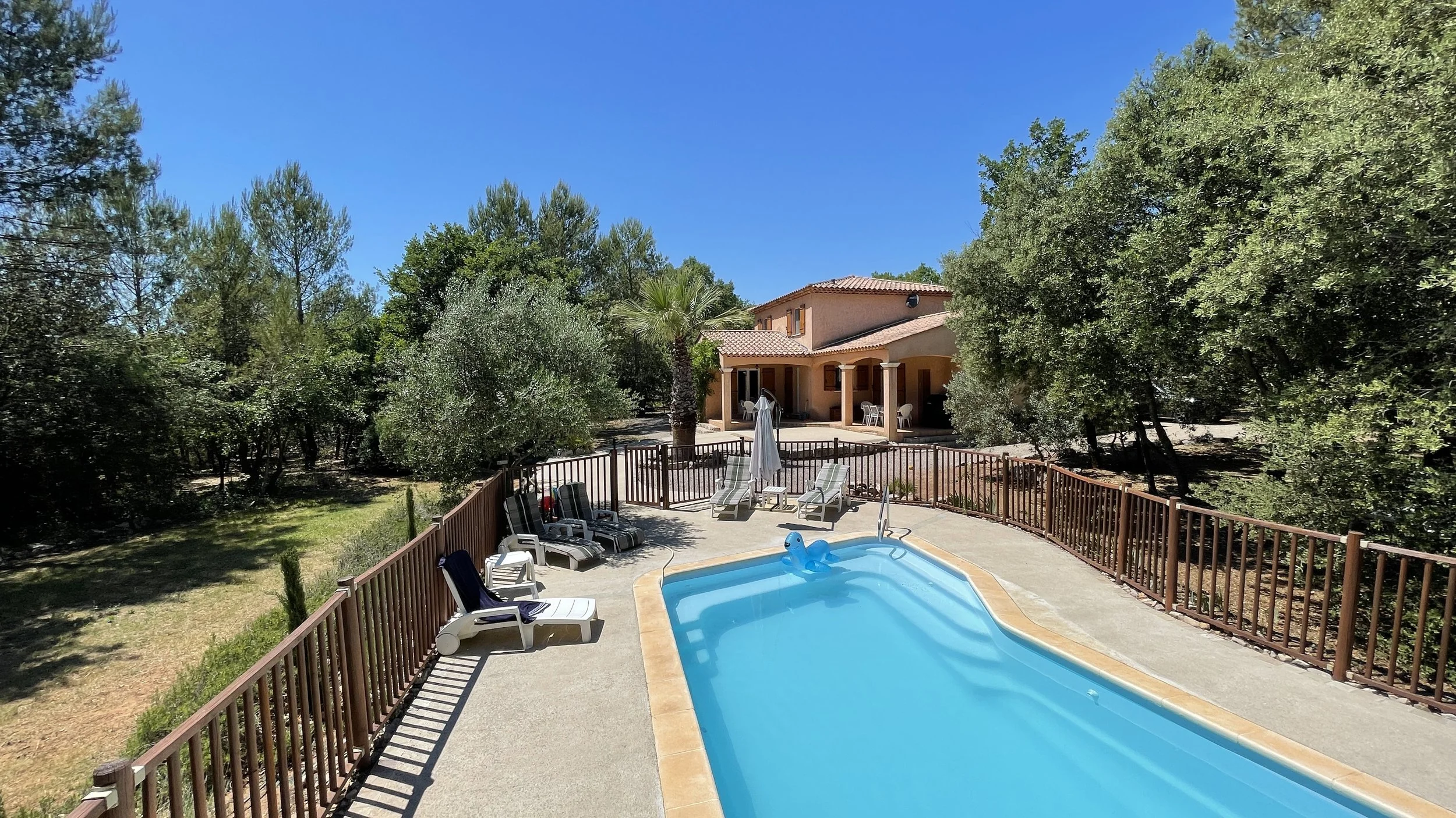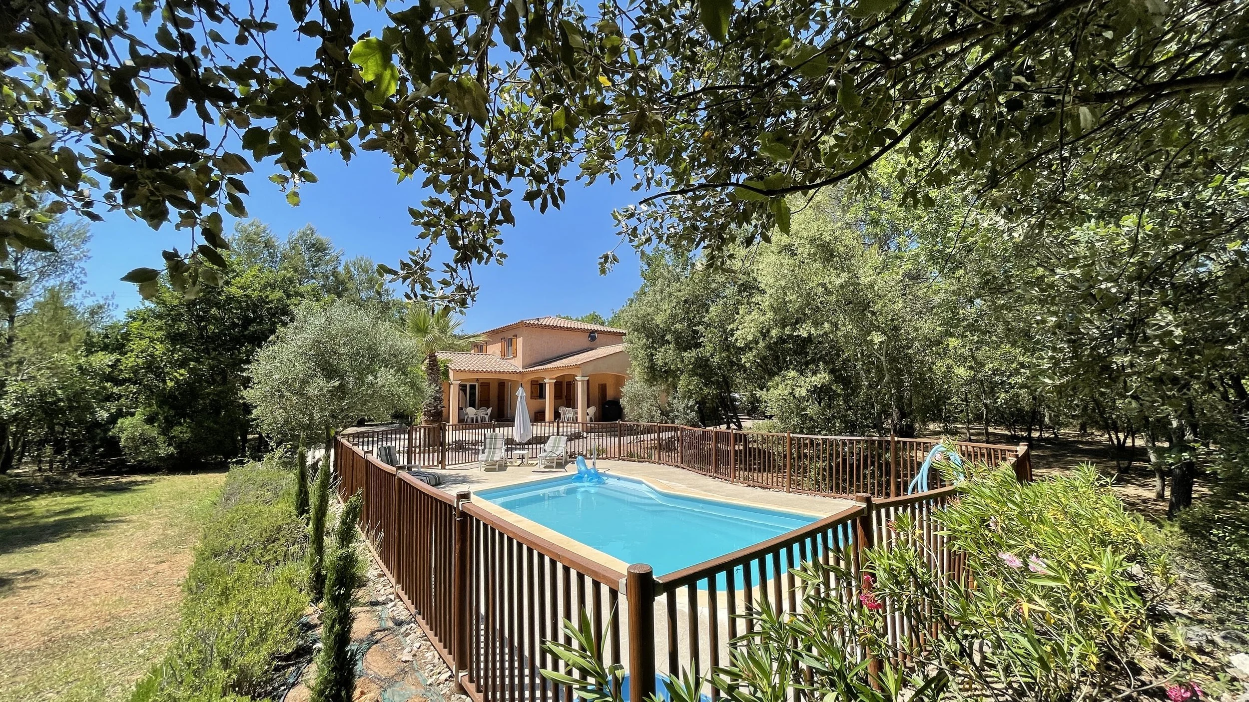Das Grundstück befindet sich in einer zersiedelten Gegend genau zwischen Les Arcs-en-Argens und Trans-en-Provence. Das Grundstück ist 4200 m² groß, die Wohnfläche des Hauses mit vier Schlafzimmern und zwei Bädern beträgt 130 m² , einen Swimmingpool sowie eine Tischtennisplatte gibt es ebenfalls.